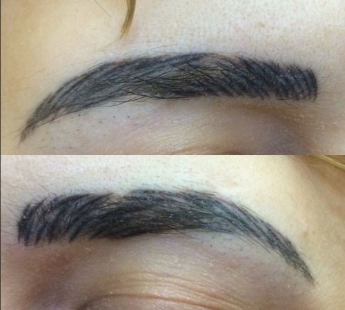 - Використання пігменту чорного кольору. Кожен досвідчений майстер вам відповість, що для перманентного макіяжу чорний колір це табу. Його не можна використовувати незалежно від обраної техніки, чи то класичний татуаж, чи сучасні пудрові брови. Чорний колір завжди мігрує у сірий. Як альтернатива використовується темний тон коричневого кольору, який ніколи не змінює свій відтінок.