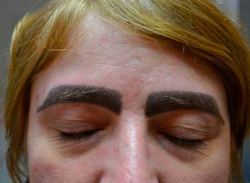 - Невідповідність бажаного з дійсним. Перед тим, як зробити перманентний макіяж, дівчина завжди уявляє собі, як зміниться її обличчя після процедури. Але може вийти зовсім не так, як уявлялося. Не варто судити про результати відразу після процедури. Адже після процедури з'являється невелика набряклість та почервоніння, а колір пігменту яскравіший. Оцінювати кінцевий результат рекомендується через місяць після процедури, коли пігмент "вляжеться", шкіра загоїться, форма повністю сформується. Про те, як гоїться перманентний макіяж почитайте тут;
