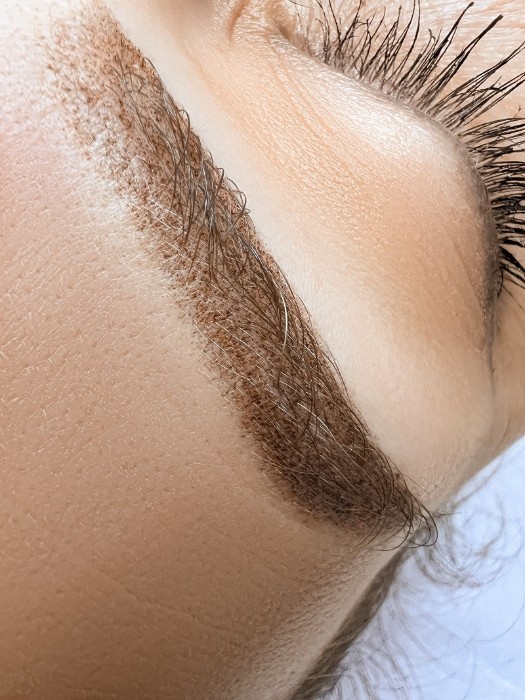 - Абсолютно немає скоринок. Замість них легке лущення, яке не приносить дискомфорту і не псує загальний вигляд брів. Пудрові брови можна робити навіть перед знаковою подією, не переймаючись, що перманентний макіяж брів зіпсує святковий мейк-ап.